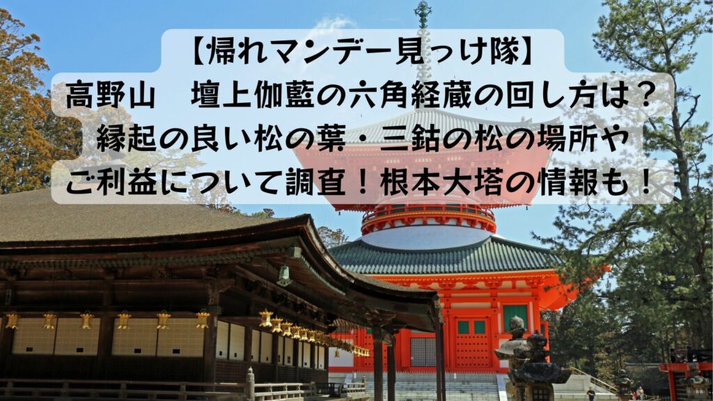 帰れマンデー見っけ隊|高野山 壇上伽藍の六角経蔵(ろっかくきょうぞう)の回し方は?縁起の良い松の葉・三鈷の松(さんこのまつ)の場所やご利益についても調査!根本大塔の情報も!