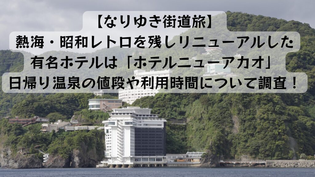 なりゆき街道旅|熱海・昭和レトロを残しリニューアルした有名ホテルは「ホテルニューアカオ」日帰り温泉の値段や利用時間について調査!