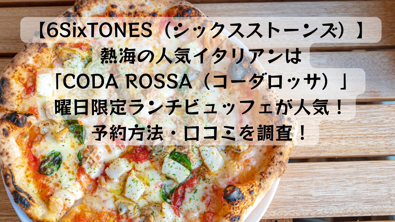 6SixTONES(シックスストーンズ)|熱海の人気イタリアンは「CODA ROSSA(コーダロッサ)」曜日限定ランチビュッフェが人気!予約方法・口コミを調査!