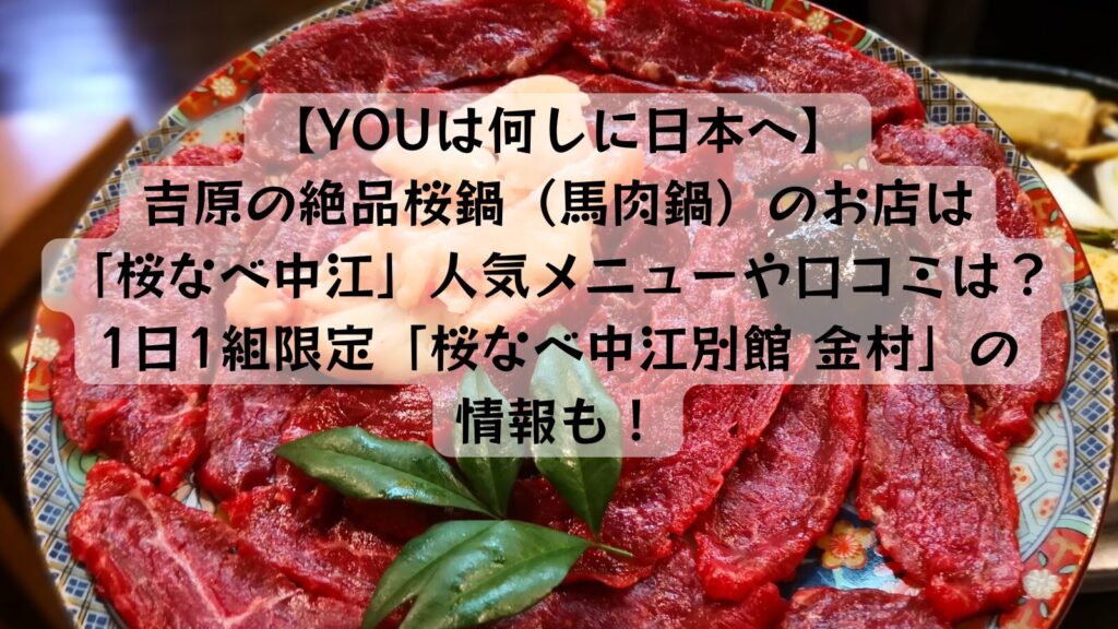 YOUは何しに日本へ|吉原の絶品桜鍋(馬肉鍋)のお店は「桜なべ中江」人気メニューや口コミは?1日1組限定「桜なべ中江別館 金村」の情報も!