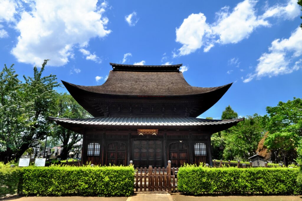 正福寺の境内にある国宝「千体地蔵堂」は、室町時代の応永14年(1407年)の建立。東京都では唯一の木造の国宝建造物で、鎌倉の円覚寺舎利殿とともに構禅宗の代表的建築として知られています。