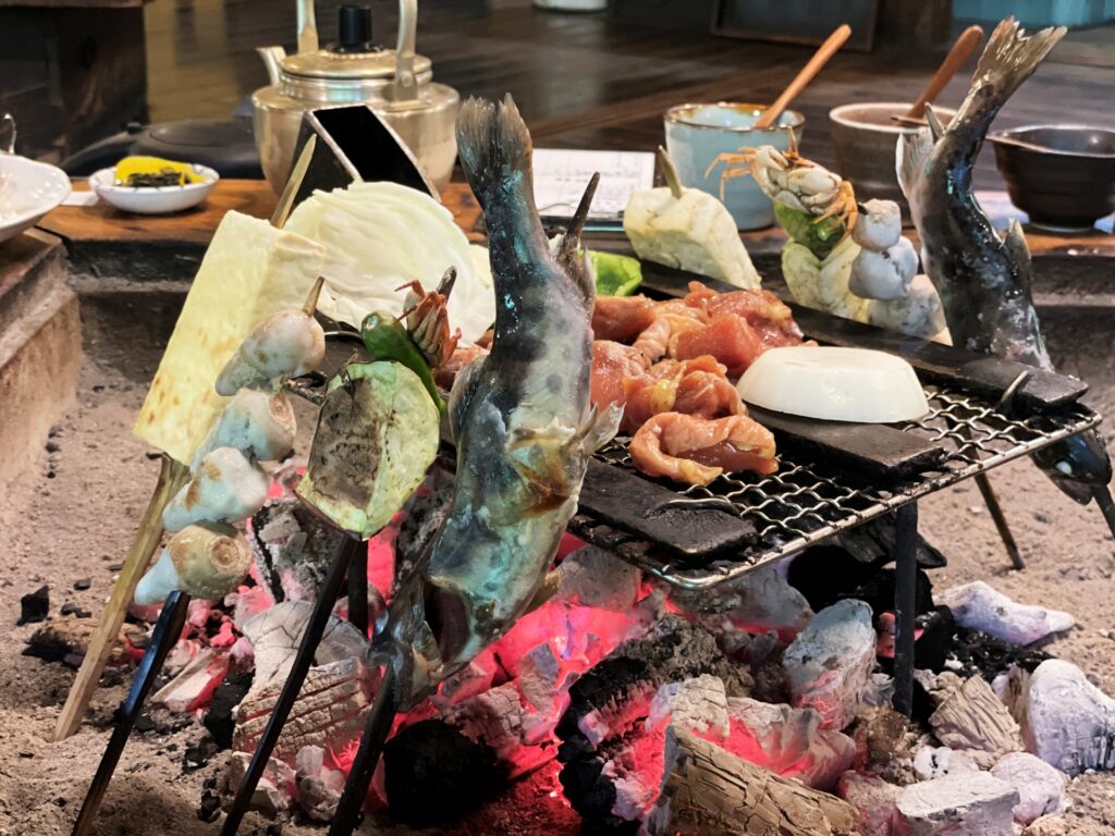 いろりの炭火で、国産の上質な食材を焼いて食べるという、忘れられない経験ができる場所でもあります。