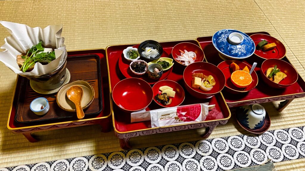 食事内容を軽く調べたところ、精進料理であるのは当然として、果物などデザートが追加されたり、洋食が出ることもあるそう。また午後にはコーヒーなども出されることもあるとか。