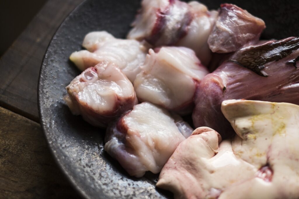 皮はぷるぷる、ヒレや胃袋はコリコリとしており、部位ごとに異なる食感を楽しむことができます。
