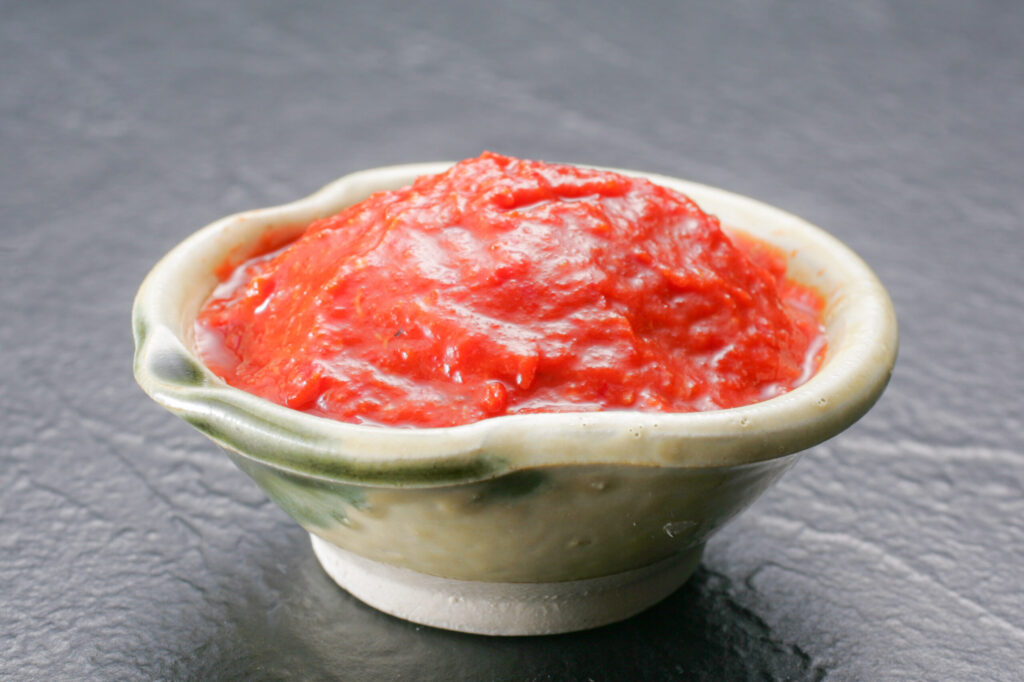 “かんずり”は新潟県妙高市周辺に伝わる、唐辛子、糀、柚子、塩を原料とした伝統的な発酵辛味調味料