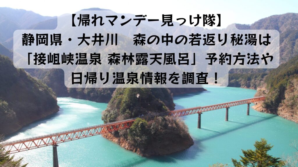 帰れマンデー見っけ隊|静岡県・大井川 森の中の若返り秘湯は「接岨峡温泉(せっそきょうおんせん)森林露天風呂」予約方法や日帰り温泉情報を調査!