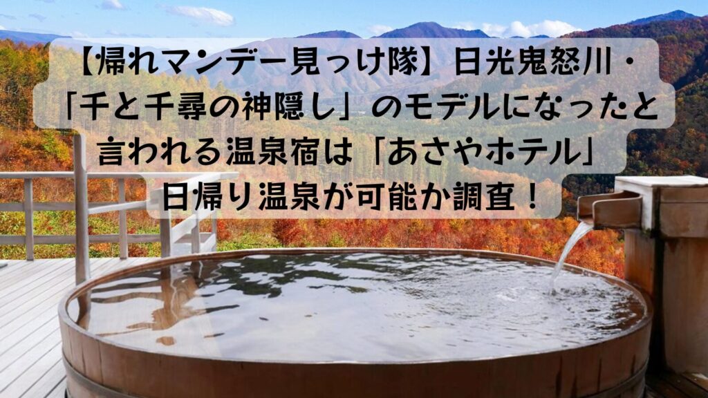 帰れマンデー見っけ隊|日光鬼怒川・「千と千尋の神隠し」のモデルになったと言われる温泉宿は「あさやホテル」日帰り温泉が可能か調査!