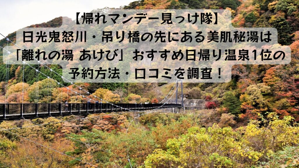 帰れマンデー見っけ隊|日光鬼怒川・吊り橋の先にある美肌秘湯は「離れの湯 あけび」おすすめ日帰り温泉1位の予約方法・口コミを調査!